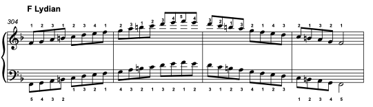 Lydian: C (W) D(W) E (W) F# (h) G (W) A (W) B (h) c