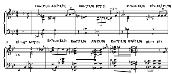 A significant part of jazz piano harmony is the use of borrowed chords.