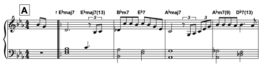 Here’s a part of a beginner version transcription found in our Premium Jazz Lessons: